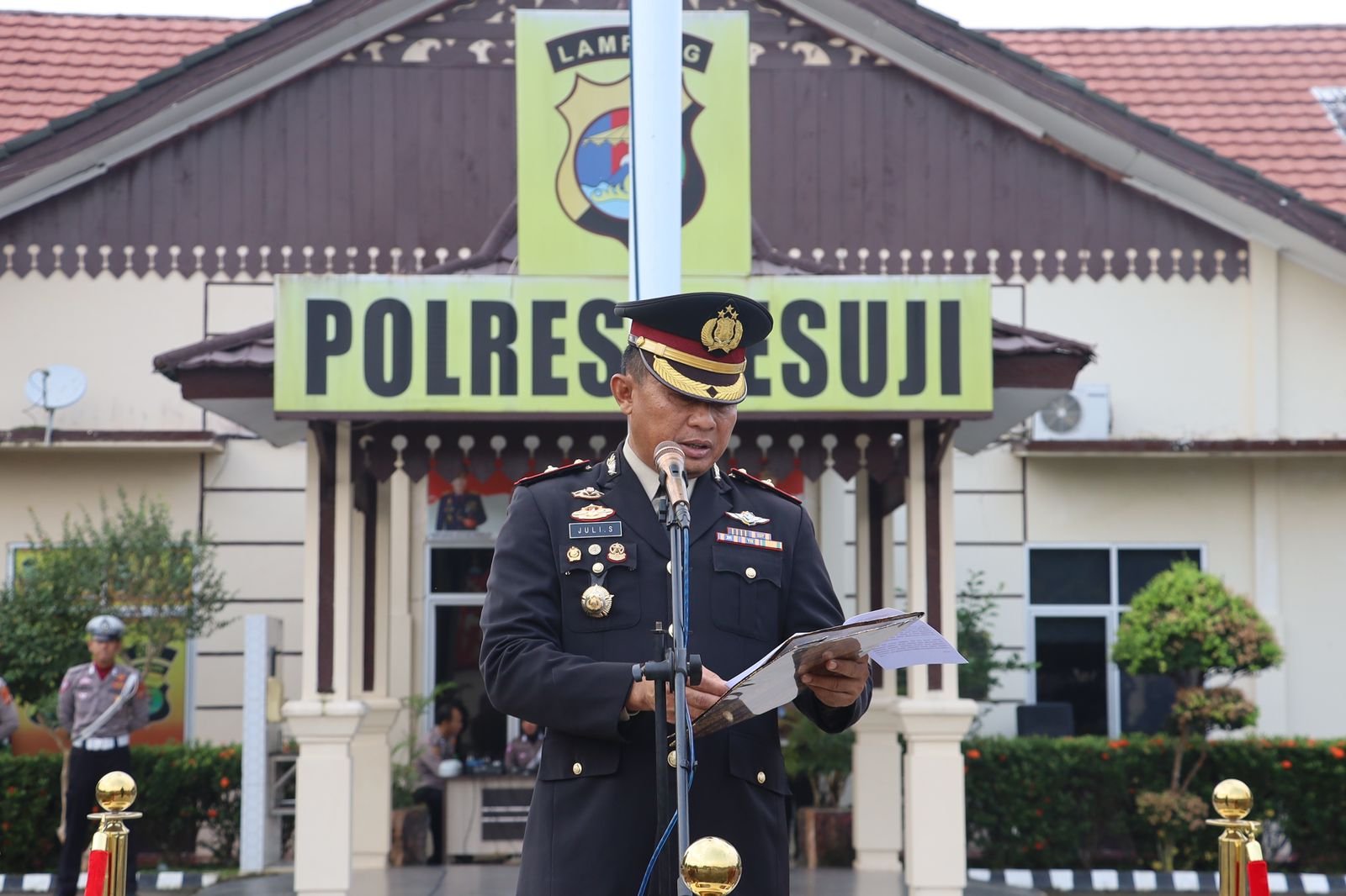 Dalam upacara tersebut, hadir Kabag Ops Polres Mesuji Kompol Iwan Darmawan S.H, M.H, Pejabat Utama Polres Mesuji, Kapolsek dan Kapolsubsektor, dan seluruh personel Polres Mesuji.