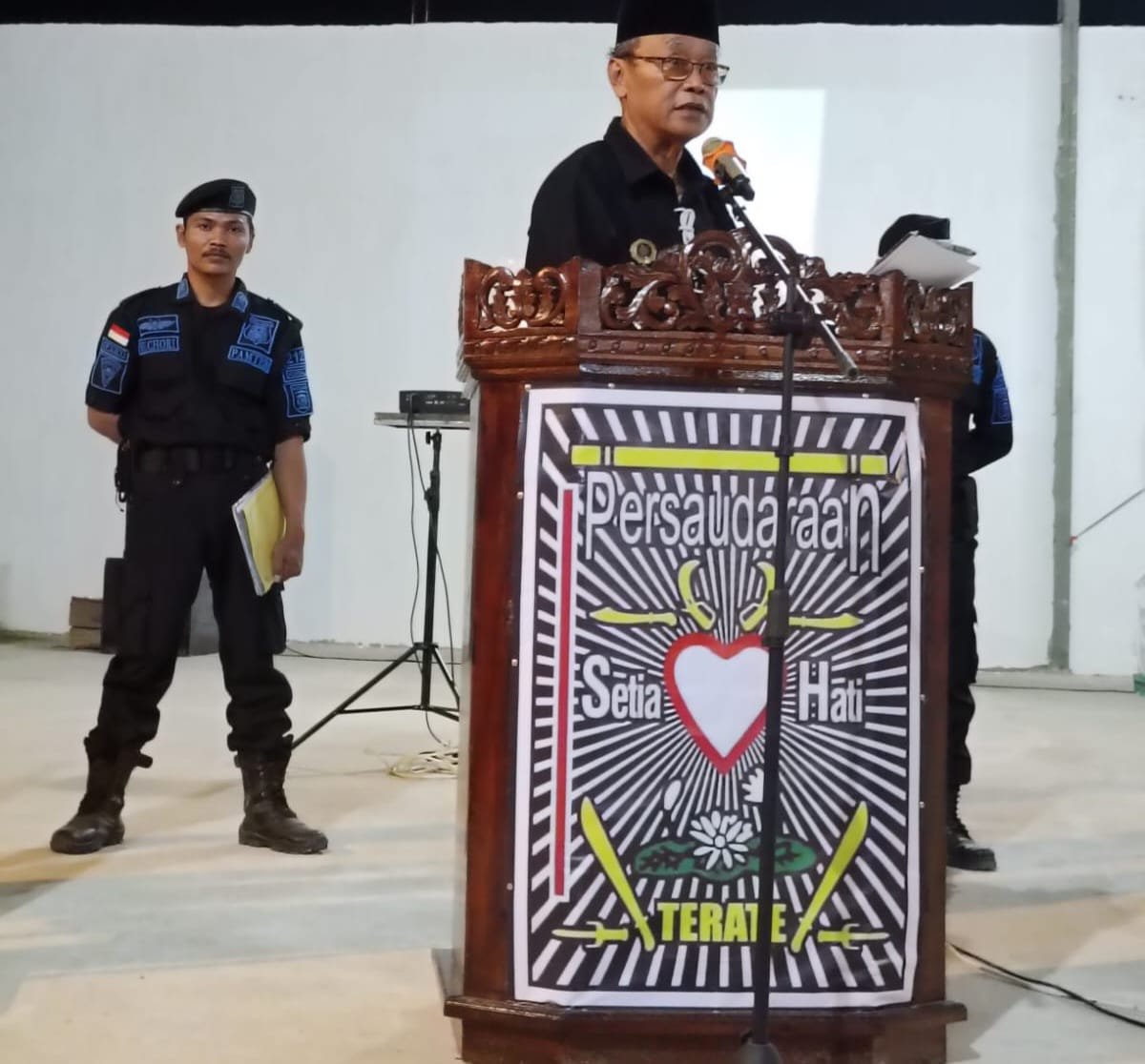 Mesuji-Wahana Lampung. Pesan agar warga Persaudaraan Setia Hati Terate(PSHT) tidak melakukan konvoi kendaraan ini sampaikan Dewan Pusat PSHT Madiun Kanjeng Raden Aryo(KRA) Tjatur Nyoto R,saat akan melakukan pengesahan Ribuan calon warga baru tingkat satu  di Gedung PSHT cabang mesuji Graha Yuda tama,kamis malam (18/07/24),