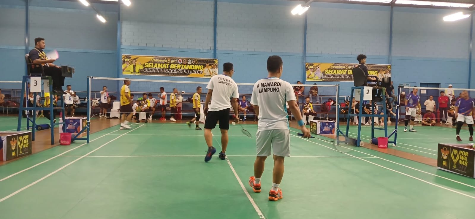 Banjarmasin-Tim Bulutangkis Pekan Olahraga Nasional(Porwanas) Persatuan Wartawan Indonesia(PWI) Provinsi Lampung, memastikan satu tiket kesemifinal setelah berhasil menyingkirkan tim Bulutangkis tuan rumah Kalimantan Selatan, di lapangan Bulutangkis Indoor Hippindo,Kalimantan Selatan, kota Banjarmasin,Kamis(22/08/24)