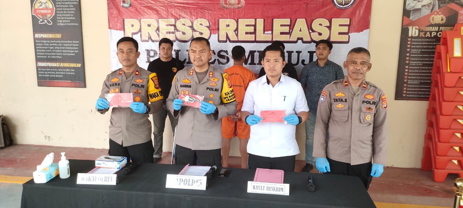Kapolres Mesuji AKBP Muhammad Harris mengungkapkan, tersangka ini bernama Firmansyah (27) Warga Desa Sidomulyo, Kecamatan Mesuji, Kabupaten Mesuji.