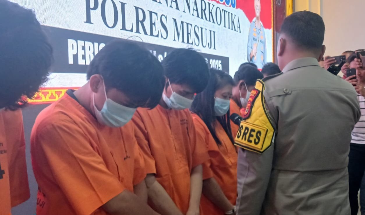 Kapolres Mesuji AKBP. Dr. Firdaus. S.IK.MH., yang didampingi Wakapolres, Kabag Ops, Kasat Narkoba dan Kasi Humas mengatakan, penangkapam para tersangka penyalahgunaan Narkotika tersebut dilakukan sejak 22 Juli hingga 7 Agutus 2025 lalu.