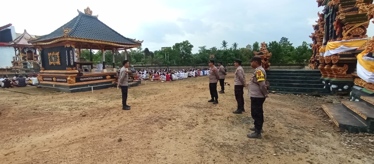 Mesuji – Personel Polres Mesuji bersama jajaran Polsek melaksanakan pengamanan di tempat-tempat ibadah umat Hindu yang merayakan Hari Raya Galungan di seluruh wilayah Kabupaten Mesuji. Pengamanan ini bertujuan untuk memastikan keamanan dan kelancaran ibadah serta memberikan rasa aman kepada umat Hindu yang merayakan hari besar keagamaan.