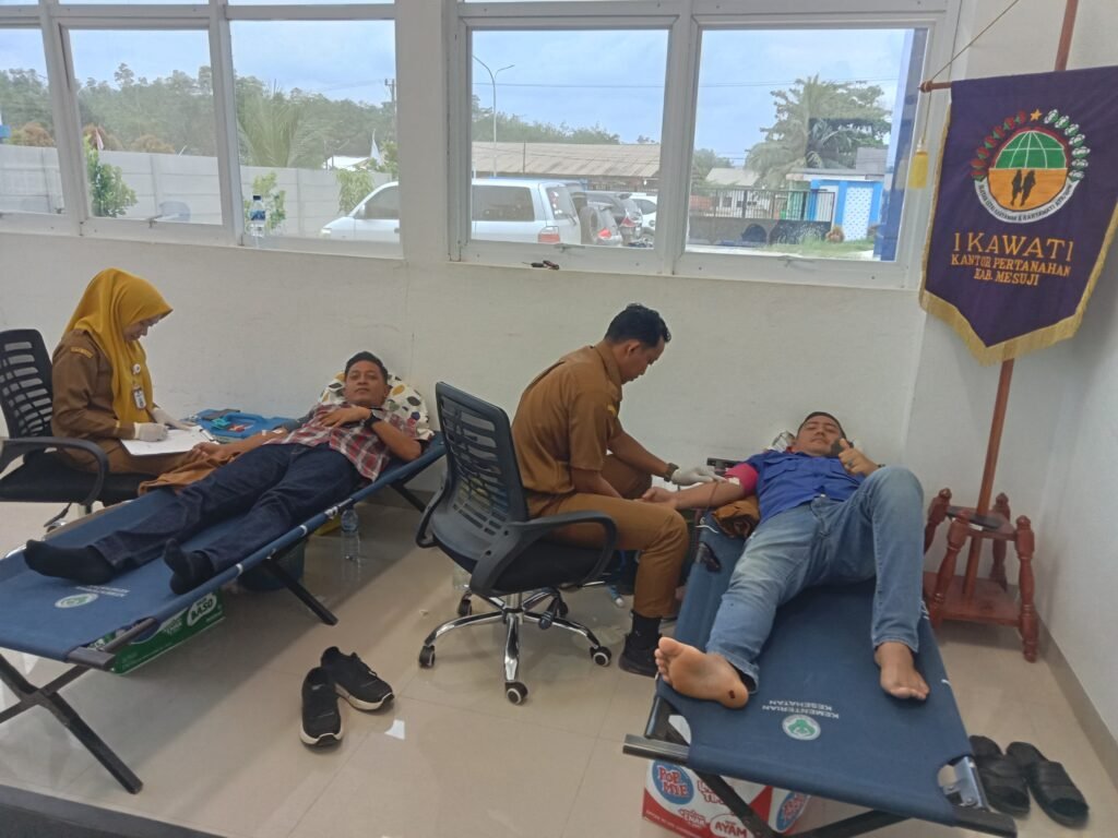 MESUJI – Kantor Pertanahan Kabupaten Mesuji bekerja sama dengan Dinas Kesehatan Kabupaten Mesuji melalui Unit Transfusi Darah (UTD) menyelenggarakan kegiatan Bakti Sosial Donor Darah yang dilaksanakan di lingkungan Kantor Pertanahan Kabupaten Mesuji, Selasa (20/01/2026).
