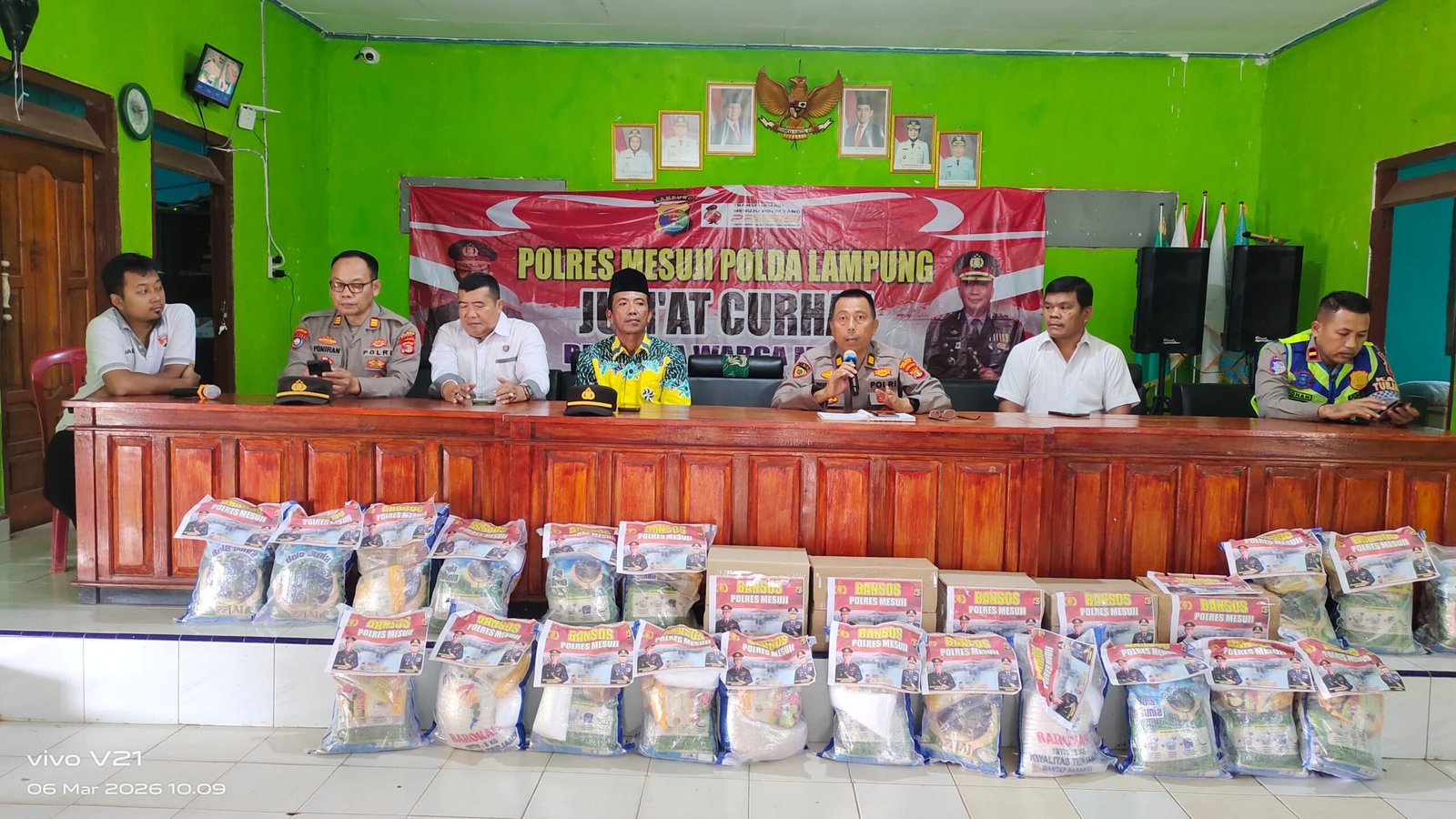 Kabag SDM Polres Mesuji AKP Muslifar mewakili Kapolres Mesuji AKBP Dr. Muhammad Firdaus S.Ik, M.H menyampaikan bahwa “Jumat Curhat” merupakan program rutin yang dilaksanakan untuk mendekatkan diri kepada masyarakat.