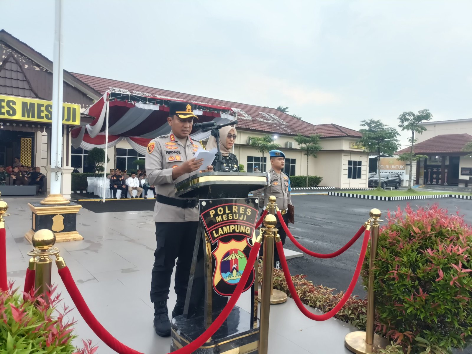 Mesuji – Jajaran Polres Mesuji bersama stakeholder terkait melaksanakan Apel Gelar Pasukan Operasi Kepolisian Terpusat “Ketupat 2026” dalam rangka pelayanan perayaan Idul Fitri 1447 H, bertempat di lapangan Apel Mapolres setempat. Kamis (12/03/26)
