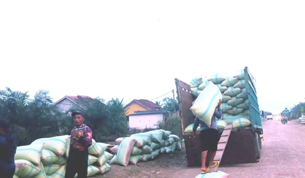 Kehadiran puluhan Truck pengangkut ini diketahui, menunggu antrian muatan padi miliki masyarakat setempat untuk di antar ke juragan Gabah(sebutan lain dari padi-red) di luar Kabupaten Mesuji